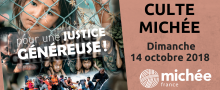 Chaque fois que l’Église exprime en actes de justice son expérience de la Grâce de Dieu, elle vit l’évangile généreux.Culte Défi Michée Dimanche 14 octobre 2018