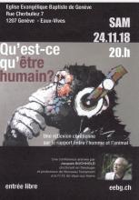 Conference « Qu'est-ce qu'être humain ? » à l'Eglise Evangelique Baptiste de Gèneve le samedi 24 Novembre 2018 à 20H.