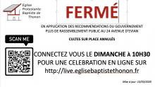 En revanche l’église se rassemble en ligne sur internet à 10H30 sur http://live.eglisebaptistethonon.fr/