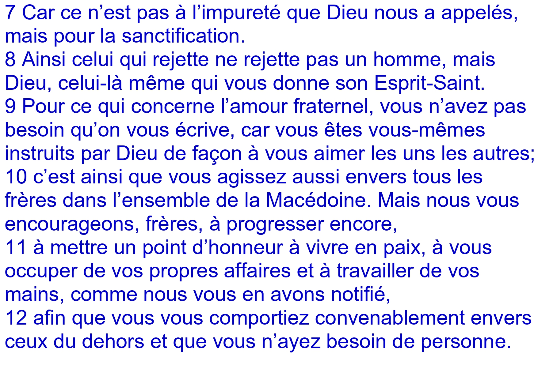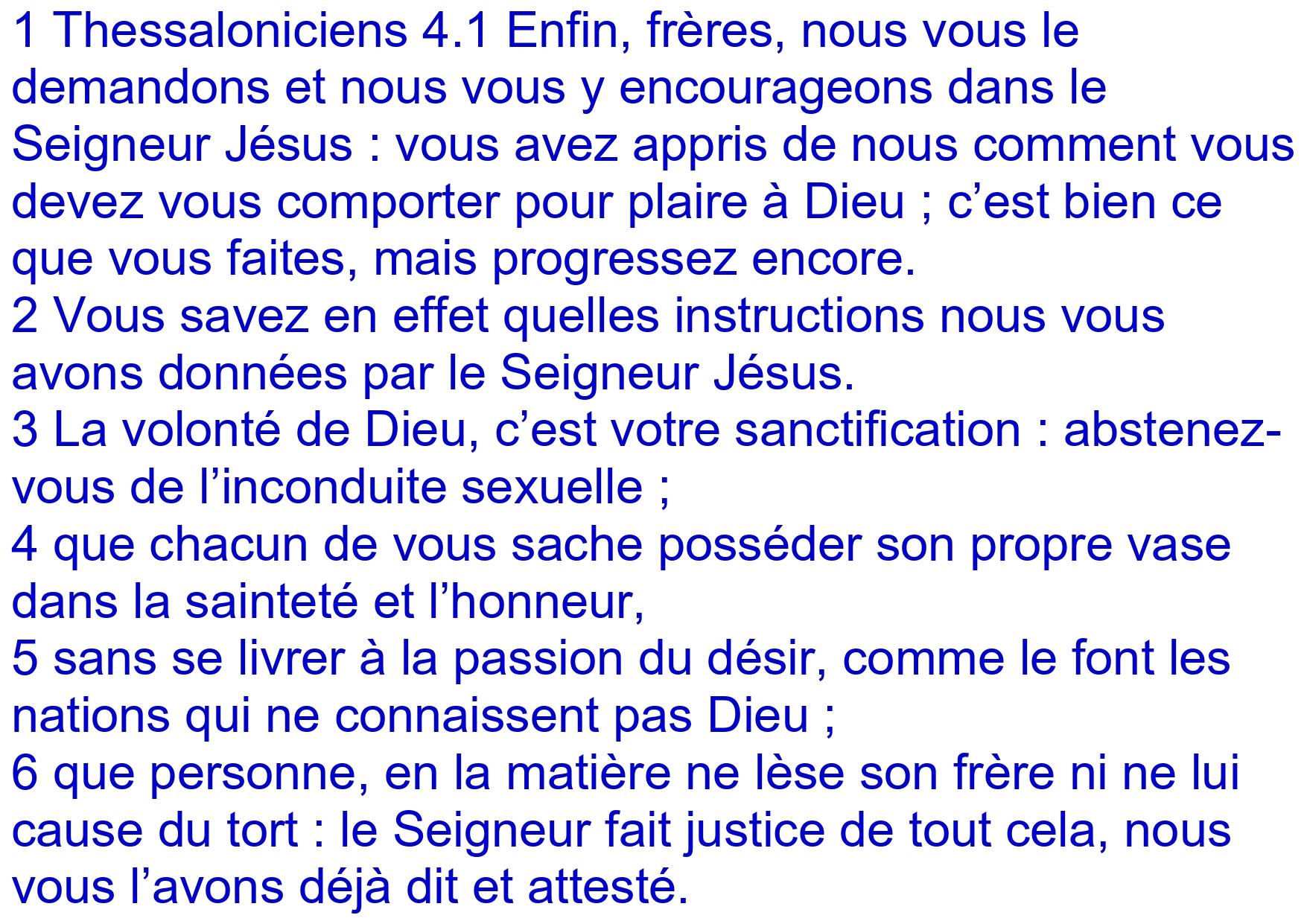 Texte biblique : 1 Thessaloniciens chapitre 4